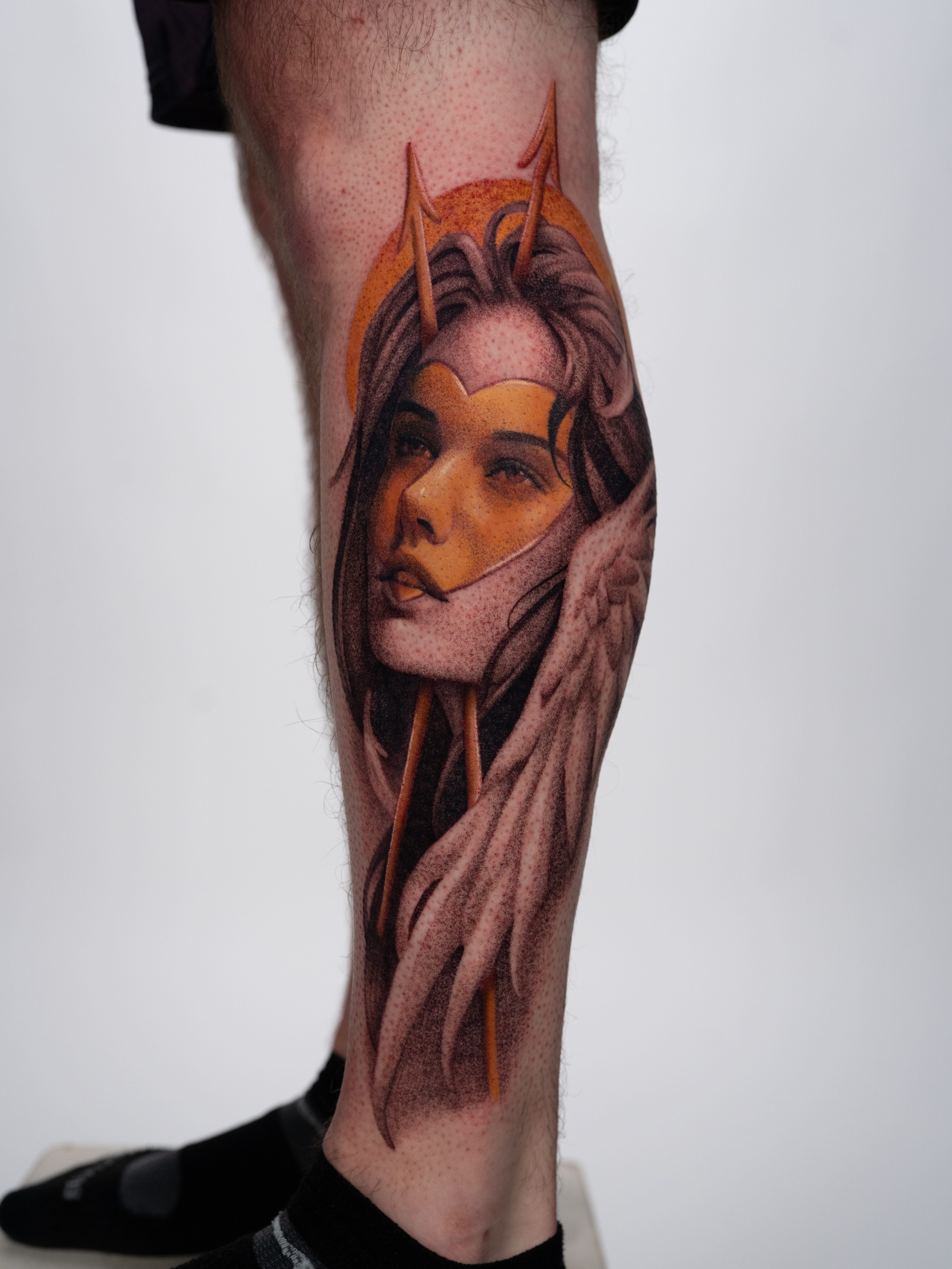 Jon’s style combines black & grey realism with ornamental additions, lifelike faces, detailed textures, and sacred geometry. Each tattoo flows naturally with the client’s body, creating a result that looks as if it has always belonged there.